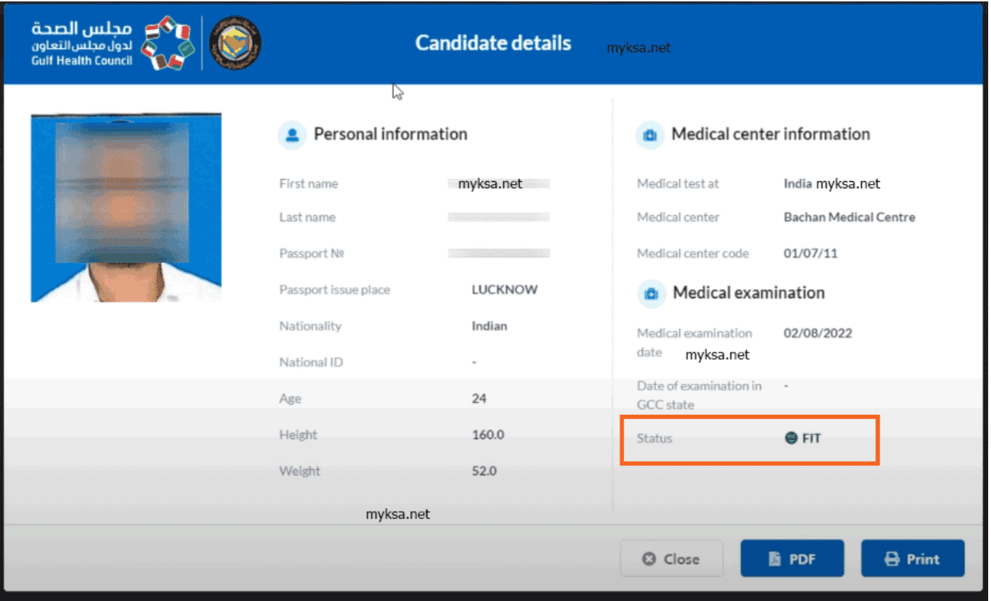 - If the status shows “FIT“, it means that you have passed the test. Now, you can proceed for Visa Process. If the status of medical report is Unfit then you have to wait for 6 months to reapply again.