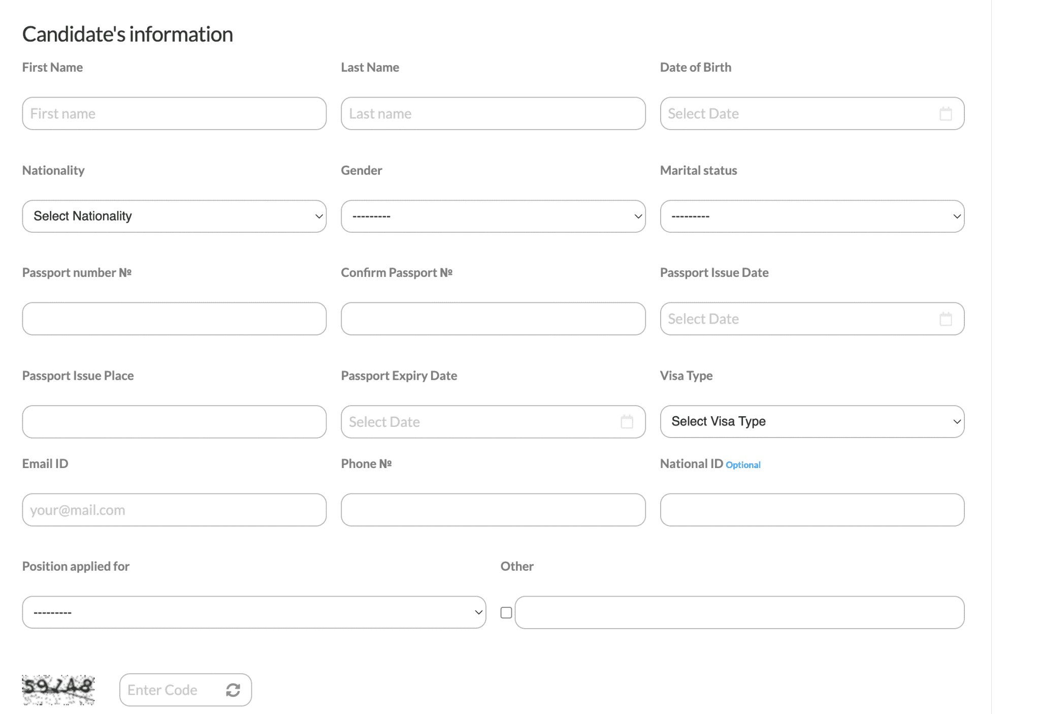 your complete information like